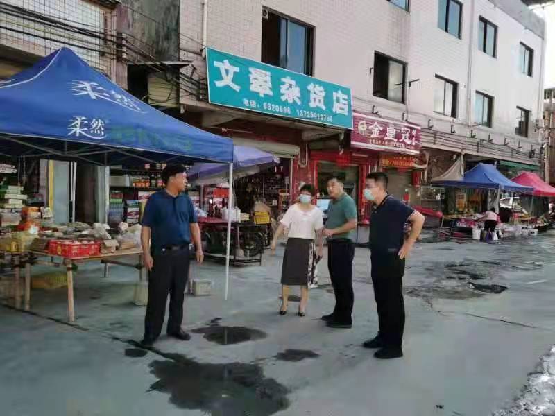 為切實做好創文迎檢工作,進一步落實創文為民、創建惠民的工作宗旨,鎮委書記劉偉榮帶隊,鎮委委員韓耿聰、黃碧萍等鎮領導再次深入鎮域內市場,現場督查創文工作。