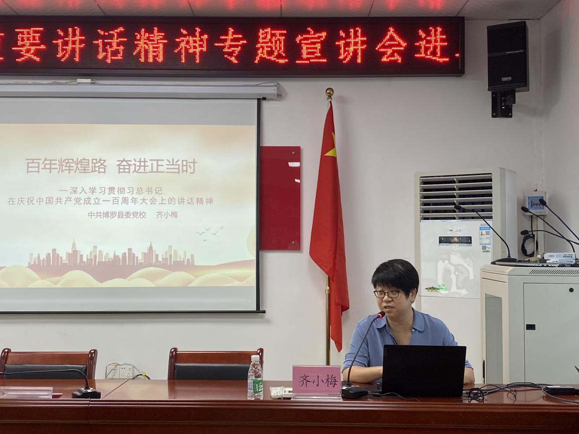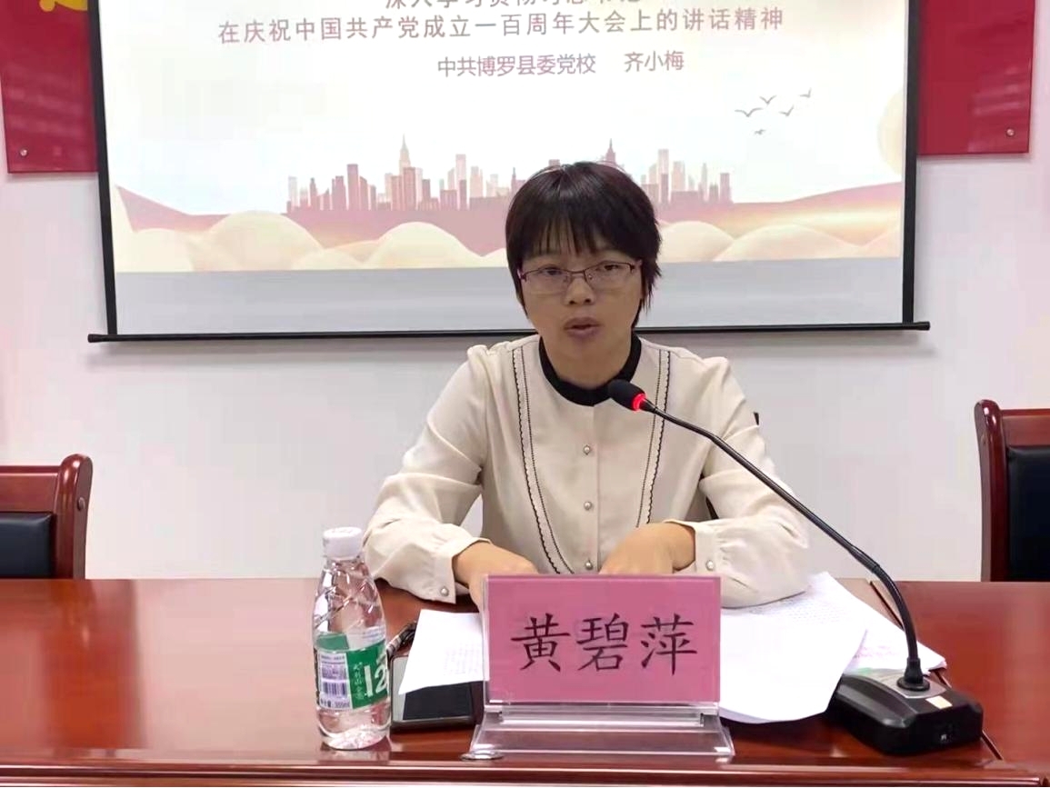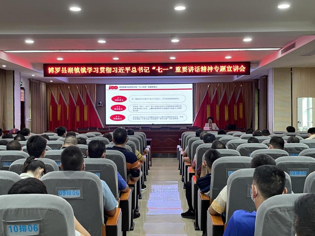 為深入學習貫徹習近平總書記在慶祝中國共產黨成立100周年大會上的重要講話精神,推動黨史學習教育深入開展,10月12日上午,按照縣委的統一部署,湖鎮鎮邀請了惠州市鎮(街)黨校“百人講師團”講師、縣委黨校教學研究部副主任蘇旭春、縣委黨校教學事務部主任齊小梅分別到鎮政府、黃塘村委開展學習貫徹習近平總書記“七一”重要講話精神專題宣講。專題宣講會由鎮委委員黃碧萍主持,鎮、村黨員領導干部200多人參加了宣講會。