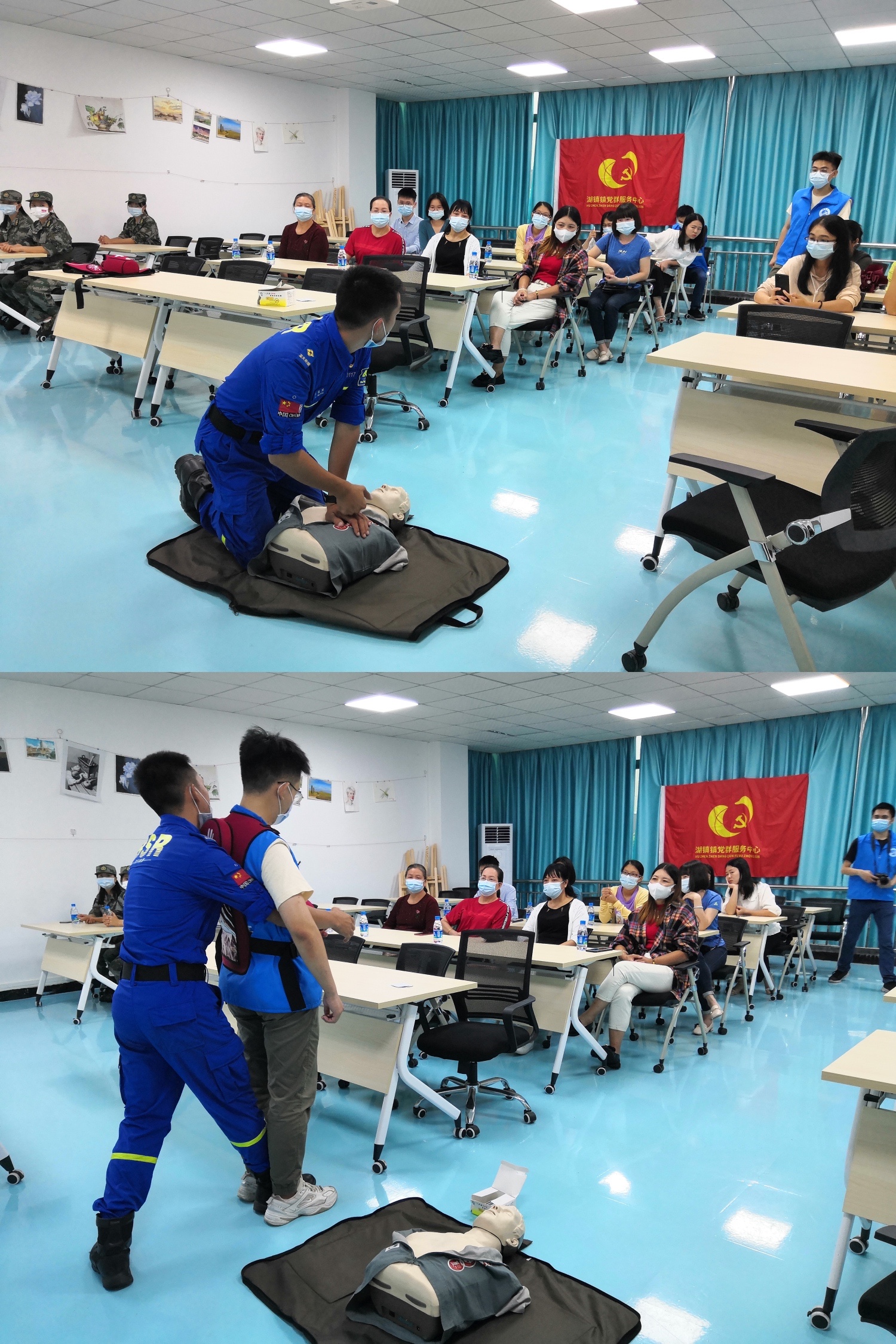 活動邀請了惠州市藍天救援隊許炳榮教官圍繞CPR急救和海姆立克急救兩個板塊的內容等應急救護知識進行專業授課。許教官強調,意外隨時可能發生在我們身邊,當緊急情況出現在面前時,要及時判斷并把握救護的”黃金四分鐘”,并模擬如何在不同情況下進行急救救護。在培訓過程中,許教官結合自己日常工作中遇到的生動鮮活實例與通俗易懂的語言,向群眾詳細講解了如何應對和處理一些日常生活中的突發情況,如何在有效的搶救時間內進行應急救護。同時,通過模擬演練,教練團隊逐一糾正群眾在實際操作中的問題,幫助大家充分掌握每個步驟的動作要領,切實提高應急救護能力。