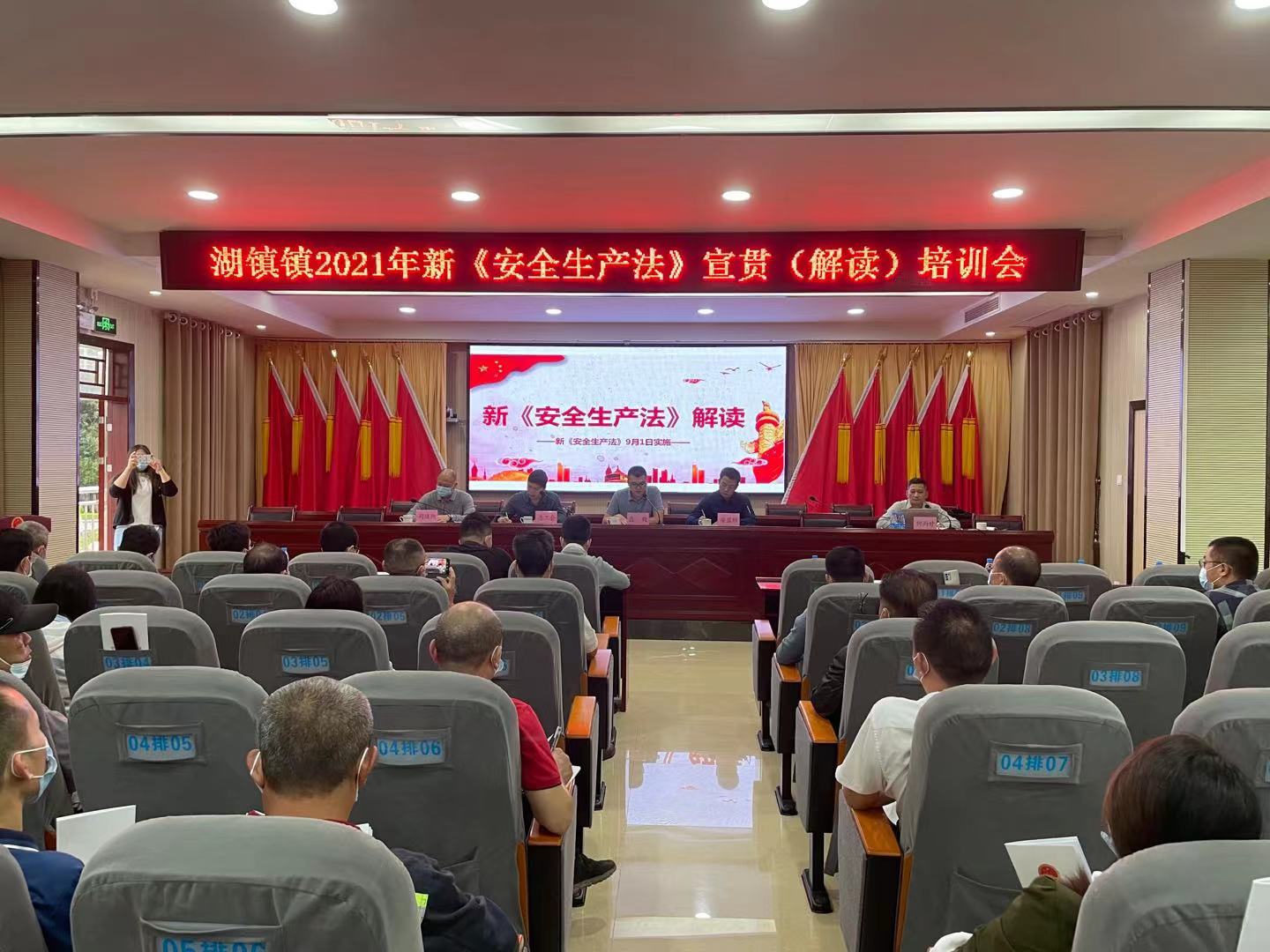 為進一步推動新《安全生產法》有效實施,全面營造學法、守法、用法氛圍,10月21日上午,湖鎮鎮組織開展了新《安全生產法》宣貫(解讀)培訓活動。鎮委委員、副鎮長聶毅出席活動并作開班動員講話,培訓會由鎮安委辦主任、安監所負責人鄧浩光主持,各村(社區)治保主任、鎮安委會成員單位負責人、安監所全體工作人員、轄區重點行業企業主要負責人共計160余人參加了本次培訓。