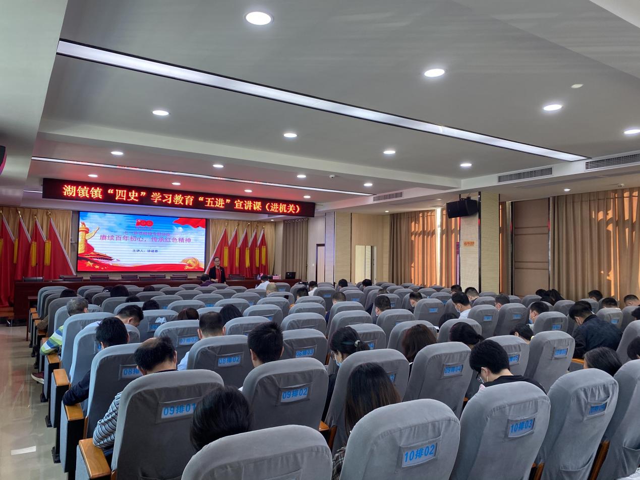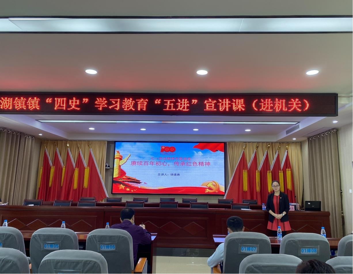 為充分發揮紅色資源在黨史學習教育中的重要作用,推動“四史”學習教育走深走實,做到知史愛黨、知史愛國、知史奮進。10月26日下午,湖鎮鎮組織開展“四史”學習教育進機關培訓。鎮黨史學習教育宣講隊徐建惠到鎮政府進行宣講。政府機關黨員干部共有90人參加此次宣講課。