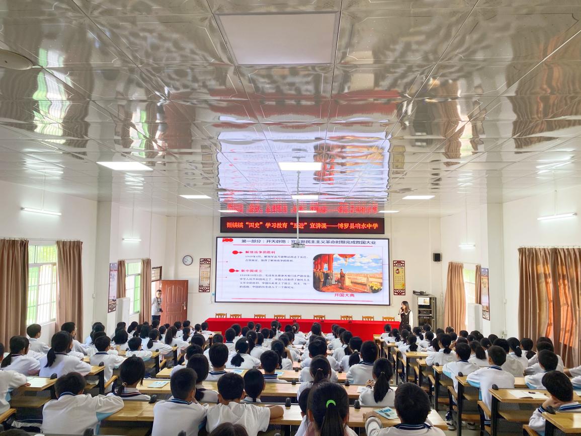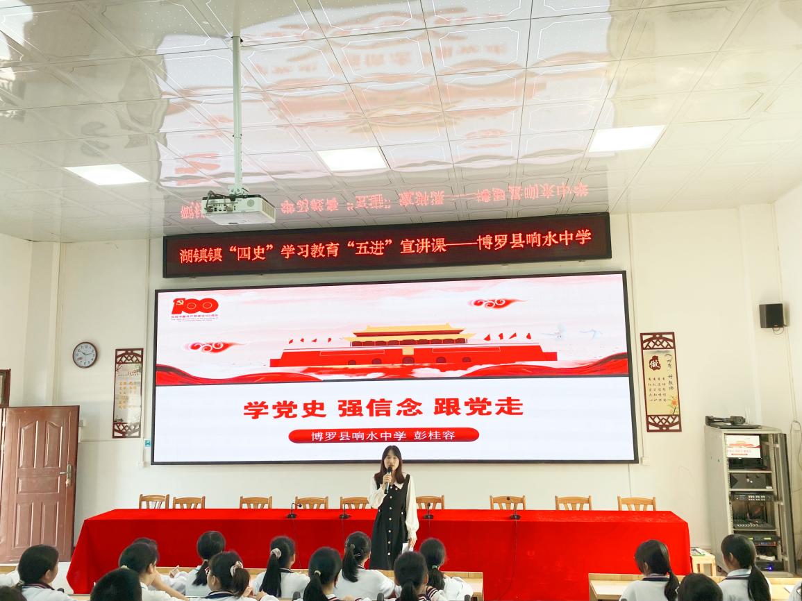為了深入學(xué)習(xí)貫徹習(xí)近平總書記關(guān)于加強(qiáng)“四史”學(xué)習(xí)的重要講話精神,10月27日上午,《學(xué)黨史 強(qiáng)信念 跟黨走》“四史”學(xué)習(xí)教育走進(jìn)響水中學(xué),湖鎮(zhèn)鎮(zhèn)宣講隊(duì)講師彭桂容專題授課,來自響水中學(xué)的160多名同學(xué)參加了宣講課。此次宣講課進(jìn)一步增強(qiáng)廣大師生學(xué)黨史、強(qiáng)信念、跟黨走的思想自覺和行動自覺。