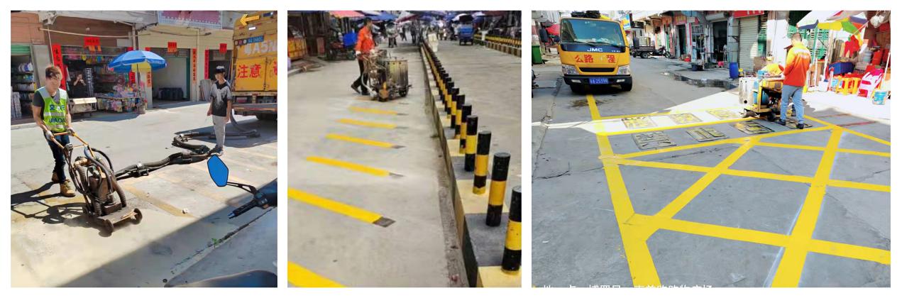 據(jù)了解,湖鎮(zhèn)中心市場是人流量、車流量較大地段,但停車位數(shù)量較少,造成出現(xiàn)許多車輛亂停亂放、亂擺賣和占道經(jīng)營等現(xiàn)象,為解決市場秩序問題,我鎮(zhèn)領(lǐng)導經(jīng)過實地調(diào)查測量后,本著方便居民、保證暢通的原則,在市場周邊施劃摩托車停車格,增加停車位,并規(guī)劃出擺賣經(jīng)營區(qū)域,規(guī)范市場擺賣秩序,確保留出足夠路面保障車輛、行人安全通行,保障市場秩序。
