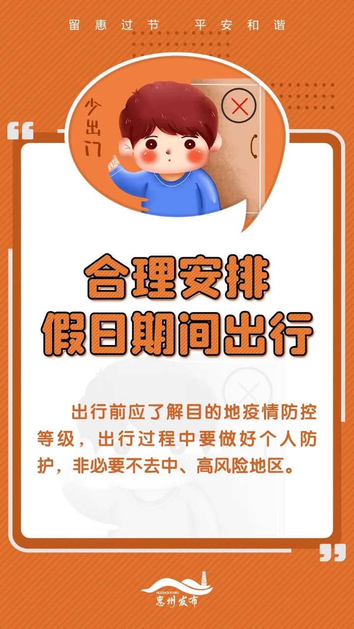 近期,黑龍江、福建等地出現本土新冠肺炎確診病例。疫情防控常態化時期,個人防護絲毫不能松懈。國慶假期即將到來,為此,我們倡議:請廣大群眾朋友非必要不離惠、不出省,繼續保持高度的防護意識,繃緊疫情防控這根弦,不要存僥幸心理,讓我們攜手同行、齊心協力,鞏固來之不易的防控成果,早日迎來這場戰“疫”的最終勝利!