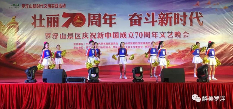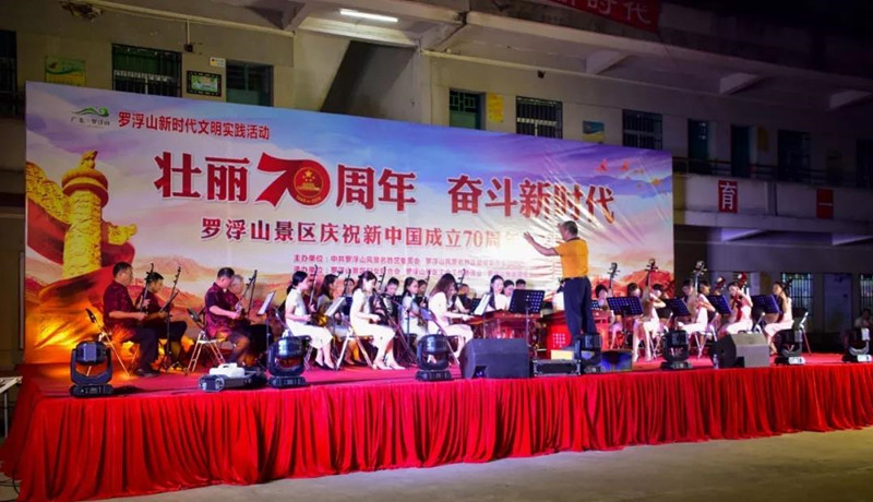為慶祝中華人民共和國成立70周年及第二屆中國農民豐收節,謳歌偉大的新中國,進一步增強愛國情感,9月27日晚上,由羅浮山景區黨委、羅浮山管委會主辦的慶祝中華人民共和國成立70周年文藝晚會在羅浮山瀾石小學舉行。