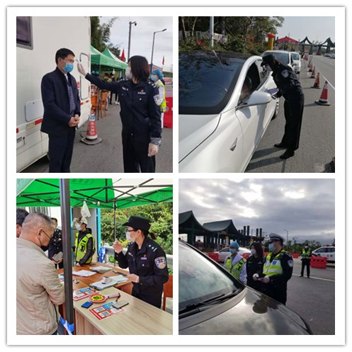 “您好,特殊時期,請配合醫護人員測量一下體溫,我得核查一下您和車上人員的信息……”“謝謝您的配合,一路平安。”在羅浮山高速出口便民服務點上,有一位女民警在執勤站崗,每天協助醫護人員對進入轄區的車輛和人員進行逐一檢查、排查登記、測量體溫,派發宣傳單張。