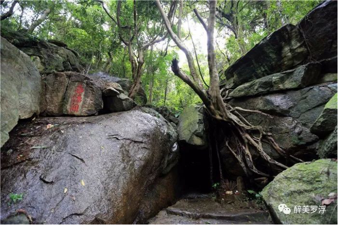 羅浮山連理樹,根深蒂固于泉源洞地下,傳說這是一對相愛的情侶為了幫助當地村民尋找解決旱災的水源,而累死并合葬在此處,最終化作榕樹和相思樹纏綿交錯在一起。