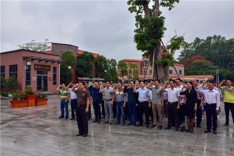 在黨建館前面廣場上,面對黨旗,在孫立武同志的領(lǐng)誓下,羅浮山景區(qū)全體黨員舉起右拳,莊嚴(yán)宣誓。