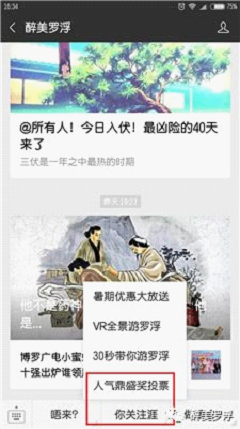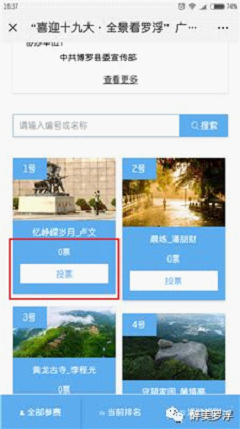 1、關注“醉美羅浮”公眾號,點擊菜單,進入投票界面