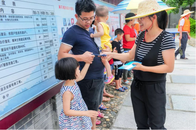 ▲演練之后,宣傳發動組還向村民派發防洪防汛的安全手冊。