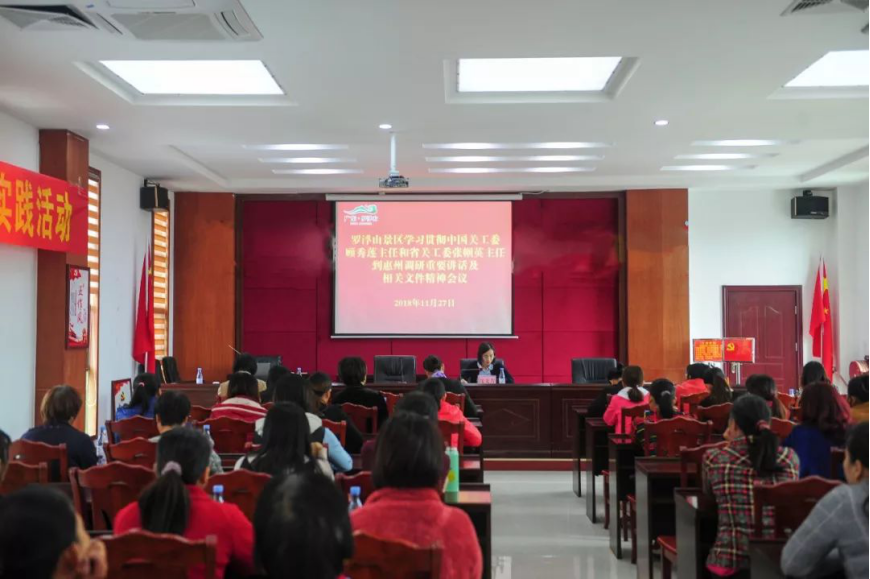 為全面貫徹落實習近平總書記對關心下一代工作重要指示精神,推動景區關心下一代事業更好發展,11月27日上午,羅浮山景區召開學習貫徹中國關工委顧秀蓮主任和省關工委張幗英主任到惠州調研重要講話及相關文件精神會議,景區黨委委員、管委會副主任沈文芳,景區婦聯副主席鄧潔,景區干部、各村(社區)代表等70多人參加了會議。