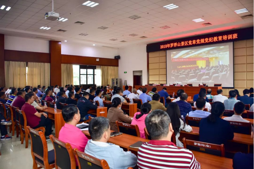 為了深化學習習近平新時代中國特色社會主義思想和黨的十九大精神,強化紀律教育、推進“兩學一做”學習教育常態化制度化,10月11日上午,羅浮山召開景區黨章黨規黨紀教育培訓班,羅浮山景區黨委、管委會領導班子成員、管委會機關黨支部全體黨員、旅游公司全體黨員、三村一社區“兩委”干部、小組長、林場、派出所、學校黨支部委員共約220人參加了此次會議。