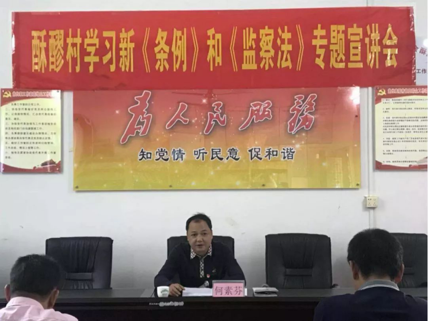 10月30日上午,縣紀委駐羅浮山景區紀檢組組長何素芬同志到羅浮山景區酥醪村開展學習《中華人民共和國監察法》和新修訂《中國共產黨紀律處分條例》宣講活動。酥醪村兩委干部、酥醪村黨員、各村小組組長、駐羅浮山景區紀檢組工作人員等52人參加了本次活動。