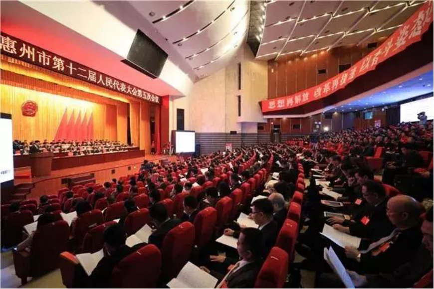 會議由惠州市委書記、市人大常委會主任李貽偉主持,惠州市委副書記、市長劉吉作惠州市人民政府工作報告。