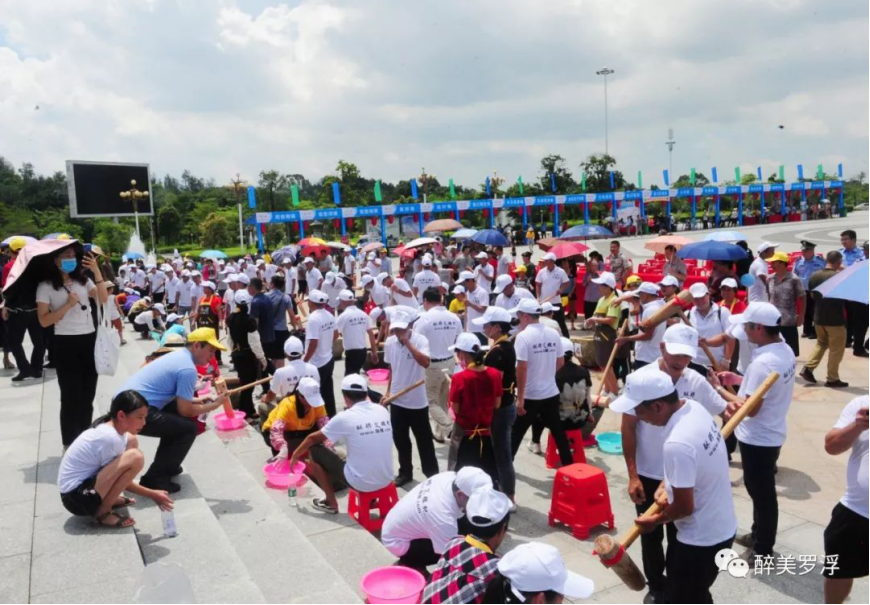 △ 傳承民俗的打糍粑表演吸引眾多游客前來觀看,場面十分壯觀!