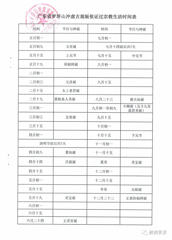 附:《廣東省羅浮山?jīng)_虛古觀皈依證“宗教生活日”時間表》
