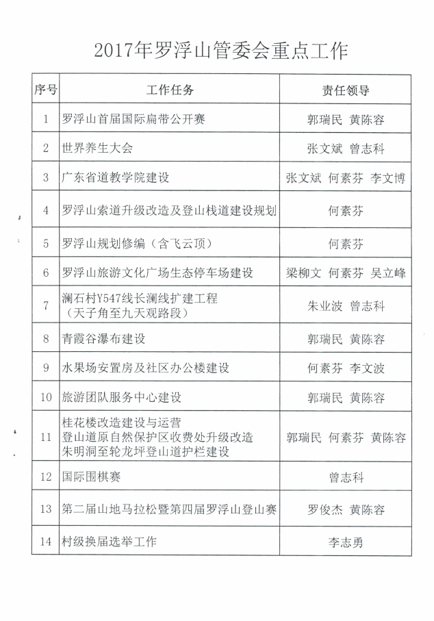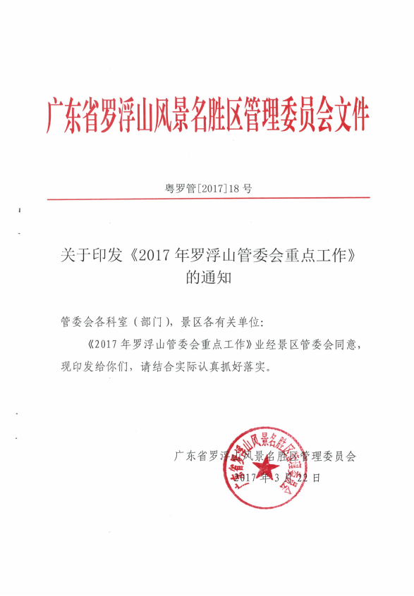 關于印發《2017年羅浮山管委會重點工作》的通知