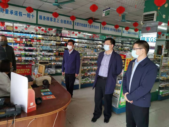 黨委書記劉才慶,黨委副書記陳家斌,黨委委員、副鎮長劉靖宇到藥店檢查、詢問醫療用品情況,并了解防疫醫療物資供應情況,要求藥店在疫情防控期間做好醫療用品的正常供應,禁止高價出售疫情防控所需醫療物品。