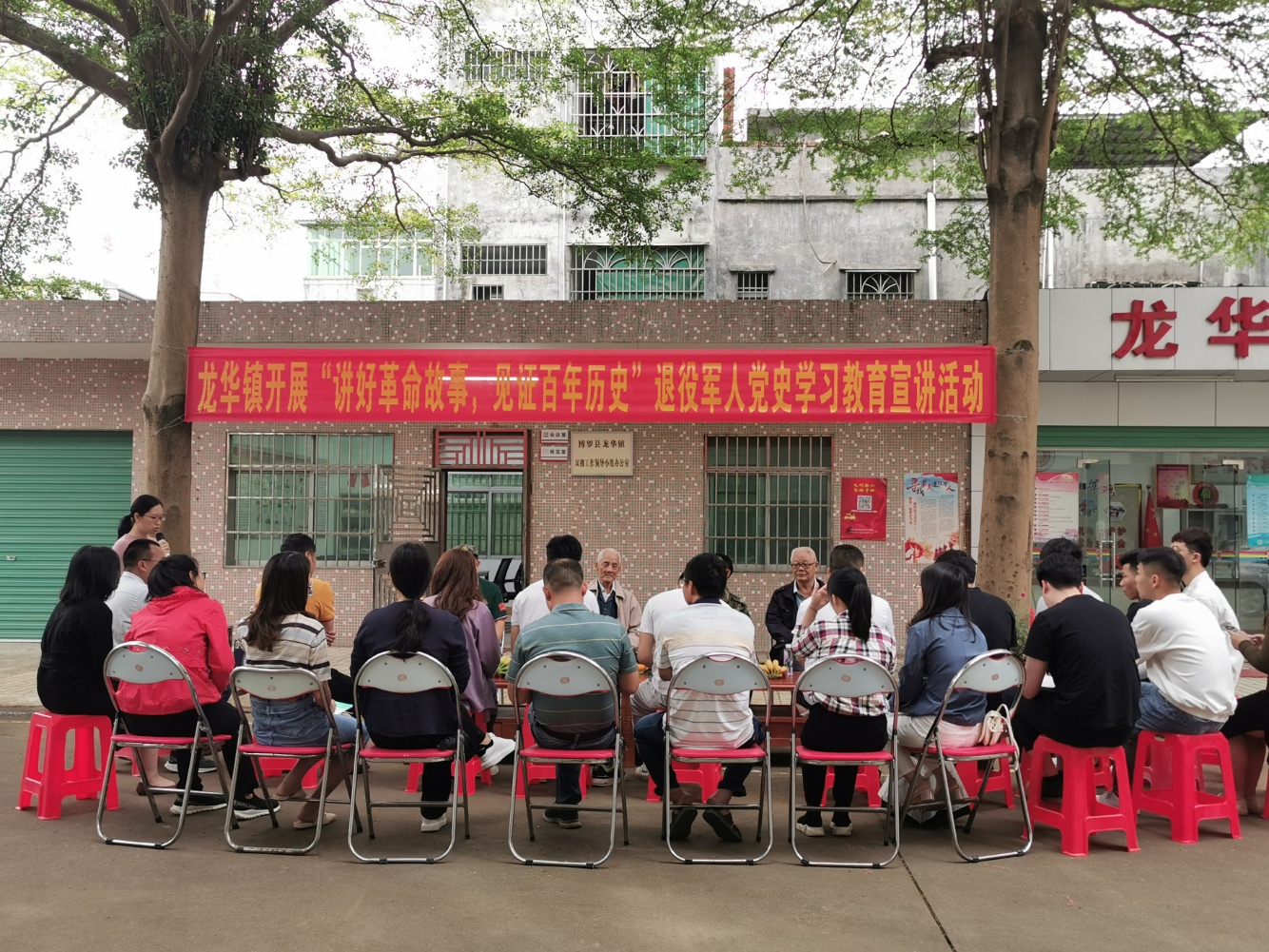 4月8日,龍華鎮組織20多名入黨積極分子,開展“講好革命故事,見證百年歷史”退役軍人黨史學習教育宣講活動,活動邀請了當地的麥丁財、陳金榮、陳炳坤、李自然等4名退役軍人講述戰場戰斗及自身故事。
