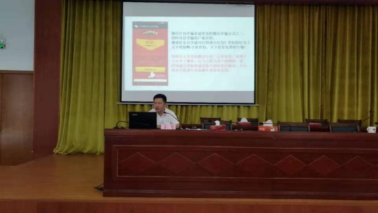 會上,博羅農商銀行龍華支行行長王飛同志給參會全體人員講解了什么是電信詐騙、什么是微信詐騙、辦理信用卡詐騙、貸款詐騙、金融交易詐騙、什么是套路貸、校園貸,把現實中出現的詐騙案例通過PPT形式給大家詳細講解,并通過自身工作經歷跟大家分享在遇到詐騙該如何應對處理。