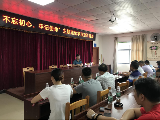 近日,在慶祝建黨98周年之際,龍華鎮委書記劉才慶到旭日村黨群服務中心開展“不忘初心、牢記使命”主題理論學習宣講活動。旭日村黨支部黨員,鎮駐村領導干部共36人參加了本次宣講會。