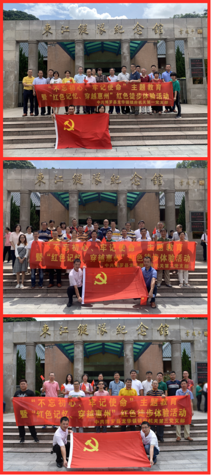 在“七·一”即將來臨之際,為慶祝中國共產(chǎn)黨成立98周年,進一步增強黨員意識、加強黨性鍛煉、提高黨員素質(zhì),圍繞開展“不忘初心、牢記使命”主題教育,6月19日上午,龍華鎮(zhèn)組織機關(guān)全體黨員來到博羅東江縱隊紀念館開展“紅色記憶、穿越惠州”紅色徒步體驗活動。我鎮(zhèn)政府機關(guān)第一、第二、第三黨支部,自來水廠黨支部、水利所黨支部、林場黨支部圓滿完成學(xué)習(xí)、打卡活動。
