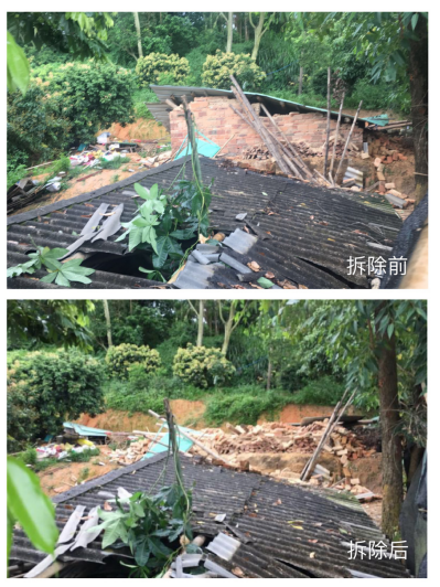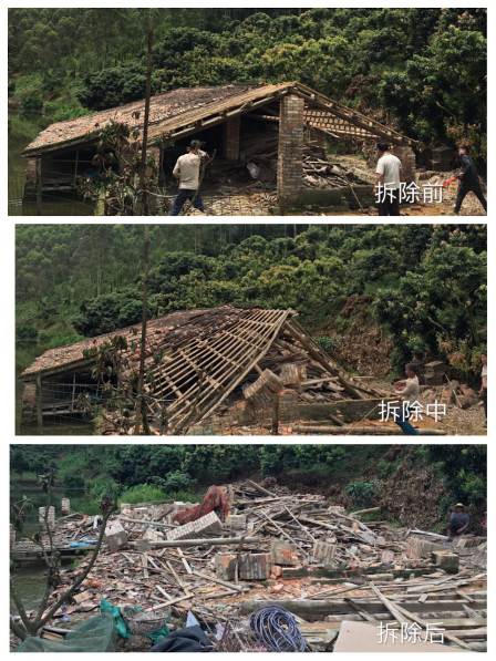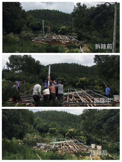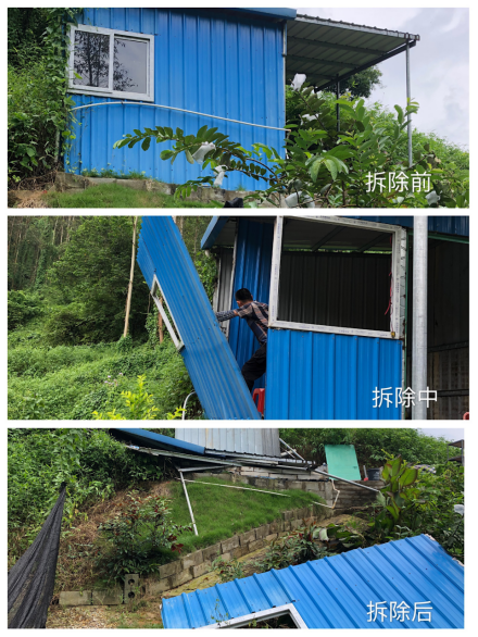 △ 糧坑水庫一級水源斑點違法搭建(斑點41處)拆除情況