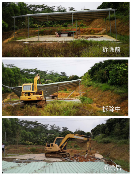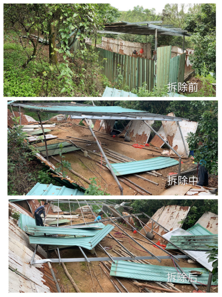 △ 糧坑水庫一級水源斑點違法搭建(斑點43處)拆除情況