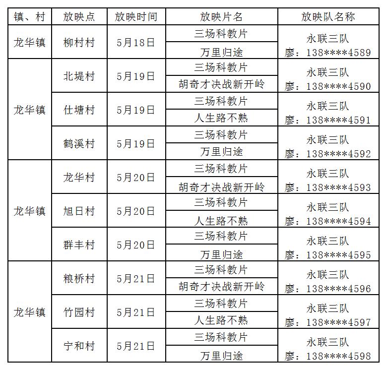 具體放映時間、位置,由村委根據當天情況通知到各小組