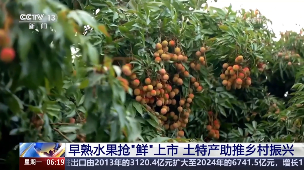 6月16日,博羅縣龍華鎮荔枝產業登上央視新聞頻道(CCTV - 13)《朝聞天下》欄目,以《早熟水果搶“鮮”上市 土特產助推鄉村振興》為題,向全國展示嶺南佳果的豐收盛景,具體報道如下: