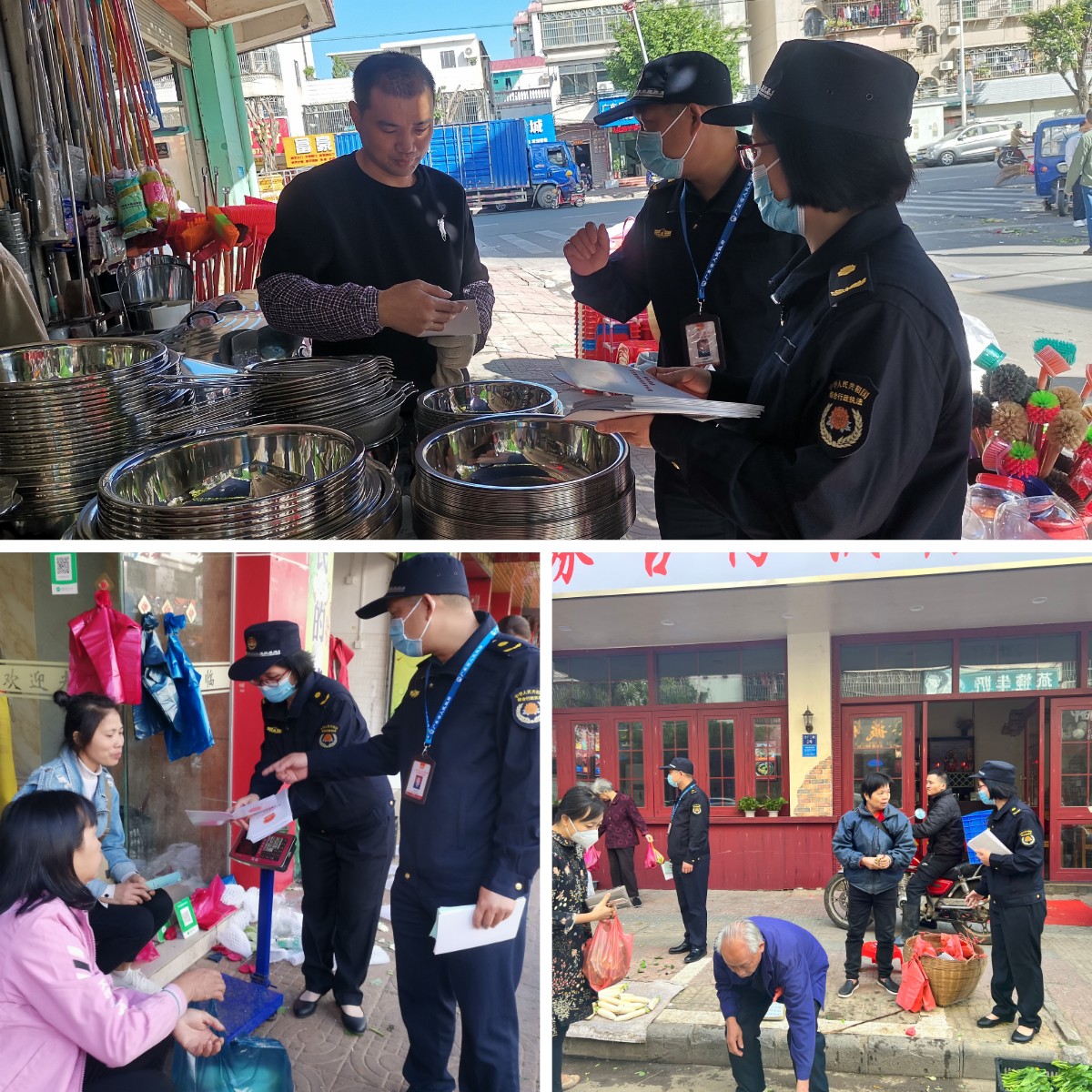 在活動中,活動工作人員圍繞工作要求,聯合各社區的志愿者,走進集市、走進店面,共同向街邊的小商販、個體經營戶發放宣傳冊子、講解條例內容,并號召廣大市民群眾積極參與到城市管理中,共同維護我街道良好的市容市貌。