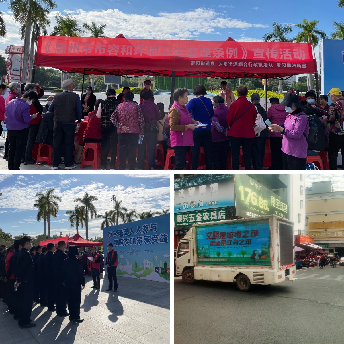 為進一步加強宣傳自今年10月1日起施行的《惠州市市容和環境衛生管理條例》,引導社會各界共同維護城市整潔的衛生環境,近日,羅陽街道黨工委副書記楊紹華帶隊組織街道綜合行政執法隊、社會治安綜合治理中心、羅陽司法所,開展以“市容管理人人參與 和諧文明家家受益”為主題的普法宣傳活動,助力全國文明城市創建。