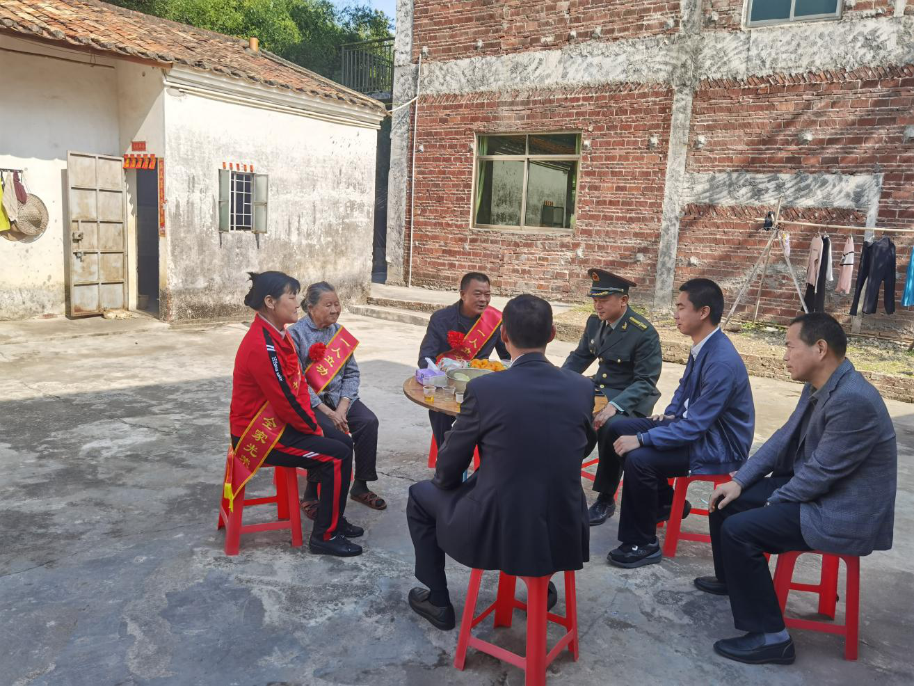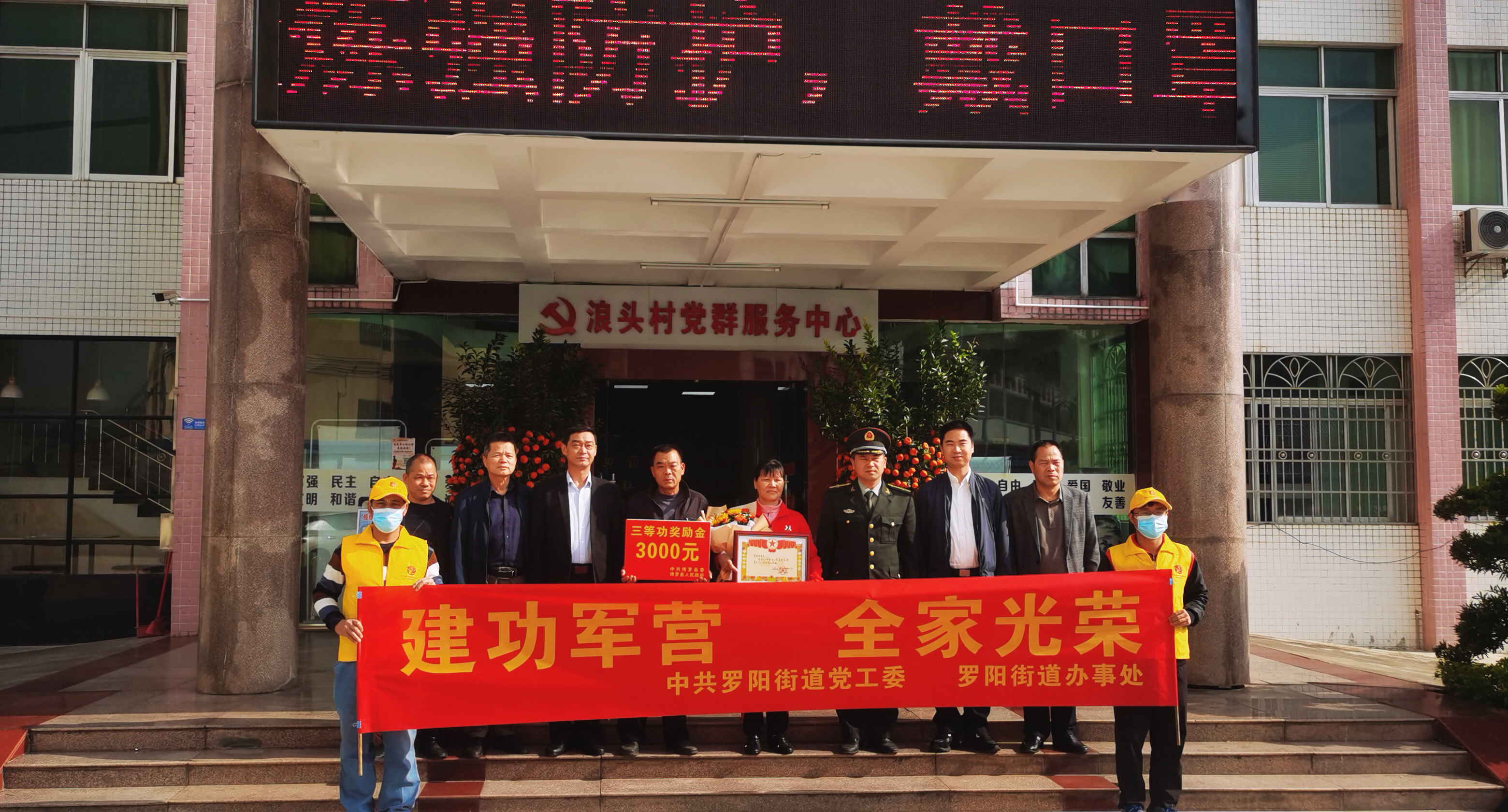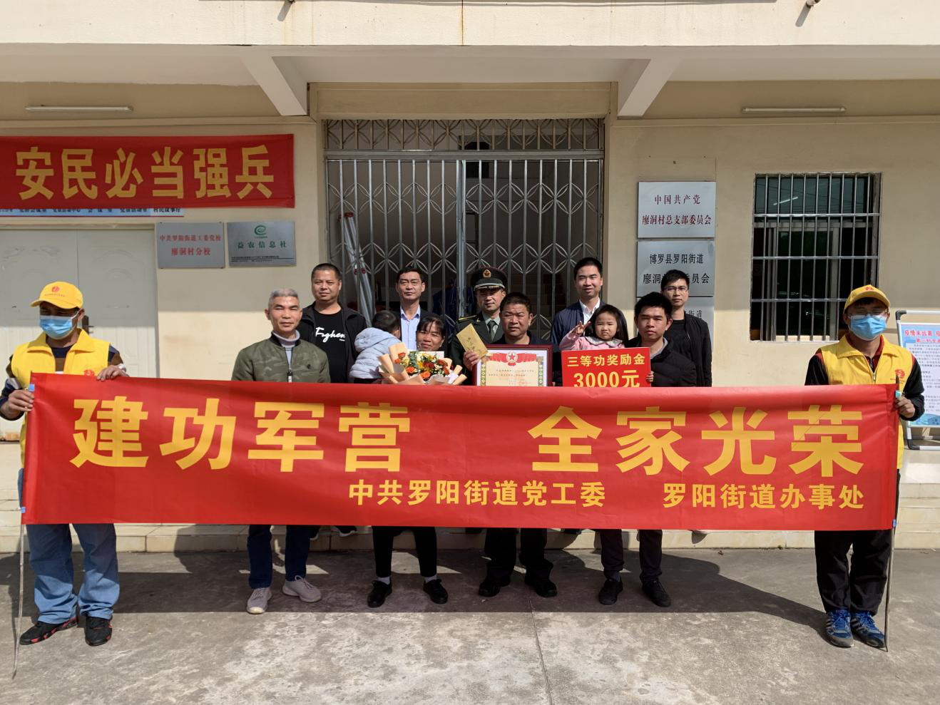 2月15日,由縣人民武裝部、縣退役軍人事務(wù)局、羅陽街道辦事處及戰(zhàn)旗志愿服務(wù)隊(duì)結(jié)成獨(dú)特的報(bào)喜團(tuán)前往羅陽街道塱頭村與廖洞村,為榮立個(gè)人三等功的現(xiàn)役軍人曾繼明家庭與李嘉鵬家庭送上立功喜報(bào)。