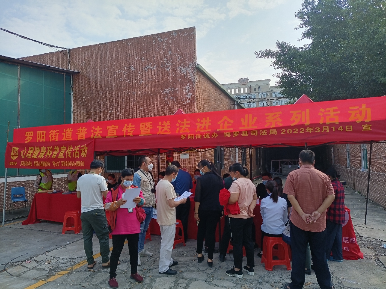 為進一步增強我街道民營企業經營者及職工的法律意識,正確引導企業職工依法維權,構建和諧勞動關系。3月14日上午,羅陽司法所聯合街道綜治辦、粵心安心理輔導站、博羅司法局法援處、公職律師事務所等部門到三美音響技術有限公司開展“送法進企業”普法宣傳活動。