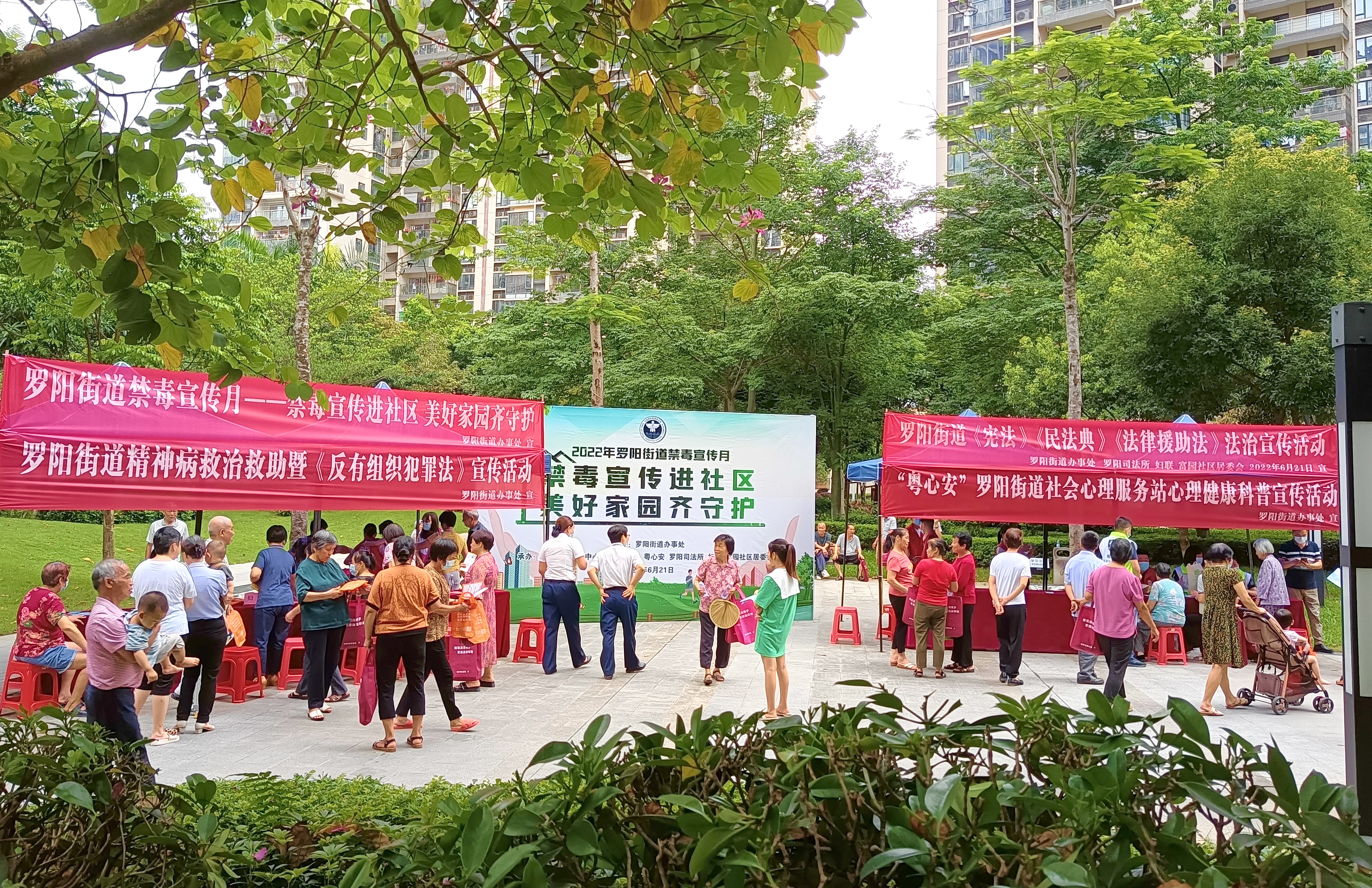為切實增強群眾禁毒、防毒、拒毒意識,加大禁毒宣傳力度,營造濃厚禁毒宣傳氛圍。6月21日,羅陽司法所聯合羅陽街道綜治中心、禁毒工作組、婦聯、粵心安心理輔導站、富園社區居委會等部門在富力廣場開展以“禁毒宣傳進社區·美好家園齊守護”為主題的法治宣傳活動。
