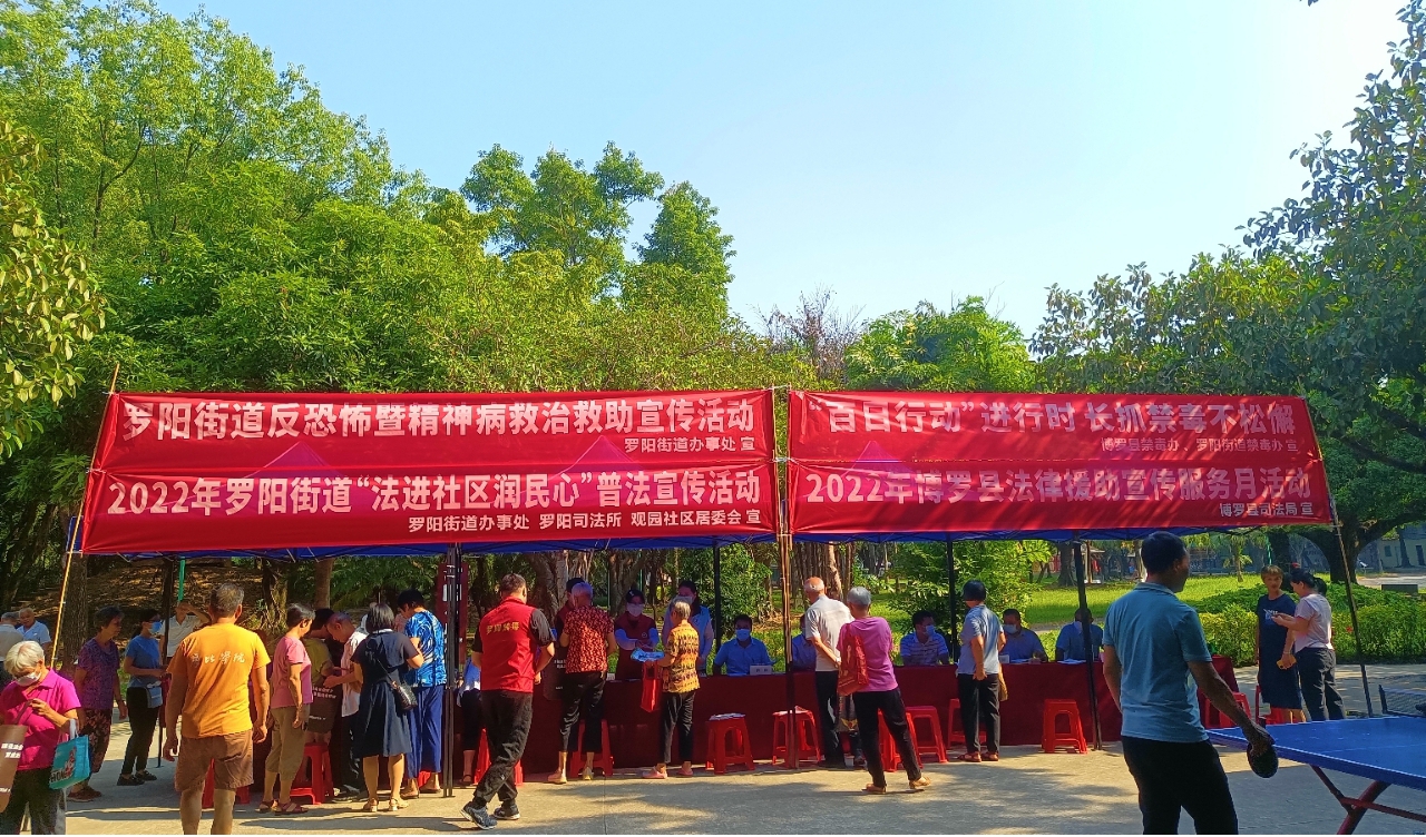 為深入學習宣傳貫徹習近平法治思想,提高廣大居民的法律知識和維權(quán)意識,掀起尊法學法守法用法熱潮,9月13日上午,博羅縣司法局、羅陽街道綜合治理中心、羅陽司法所、禁毒工作組等部門聯(lián)合在觀園社區(qū)人民公園開展“法進社區(qū)潤民心”普法宣傳活動。