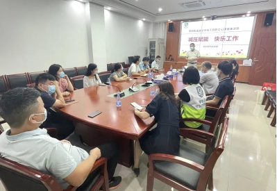此外,沈老師結合大家工作、生活中的典型事例,用通俗易懂、詼諧幽默的語言,生動有趣地講述了大家壓力與情緒產生的原因,并圍繞壓力來源與構成、自我壓力識別、壓力減負與情緒疏導等幾個方面展開講解,引導大家通過運用情緒管理、轉換心態、改變認知等方法釋放生理和心理壓力,進一步提升幸福感,促進身心健康,從而更輕松愉快地工作和生活。