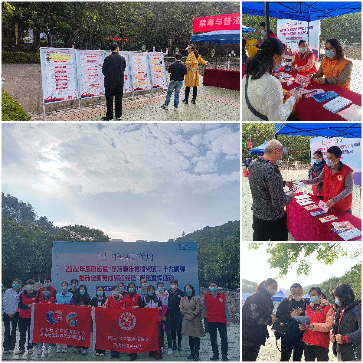 本次宣傳活動以“學習宣傳貫徹黨的二十大精神,推動全面貫徹實施憲法”為主題,通過設置主背景墻、懸掛橫幅、設立宣傳展架、現場循環播放音頻、律師現場解答、發放宣傳資料及小禮品等形式,向過往群眾宣傳《中華人民共和國憲法》、《中華人民共和國民法典》《法律援助法》等的法律法規。同時邀請東山社區法律顧問曾小琴律師及東山社區“法律明白人”到現場對群眾咨詢的問題進行詳細解答。