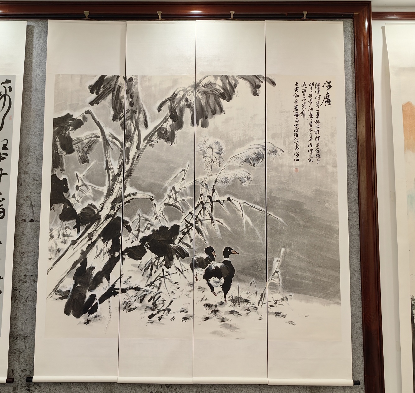 走進觀背美術館,一幅幅精美的字畫映入眼簾,這些書畫作品涵蓋山水、花鳥、書法等諸多題材,既有通過花鳥表現大自然的勃勃生機,也有通過山水表達對祖國河山“無山不美、無水不秀”的深厚感情。據悉,此次書畫展展覽的近50幅作品均是由當代知名書畫家王冷石所創作。在建館期間,他應邀來到惠州,一有閑暇便在當地取景寫生,以創作新作,此次書畫展主要展示的便是其在惠州期間的創作。