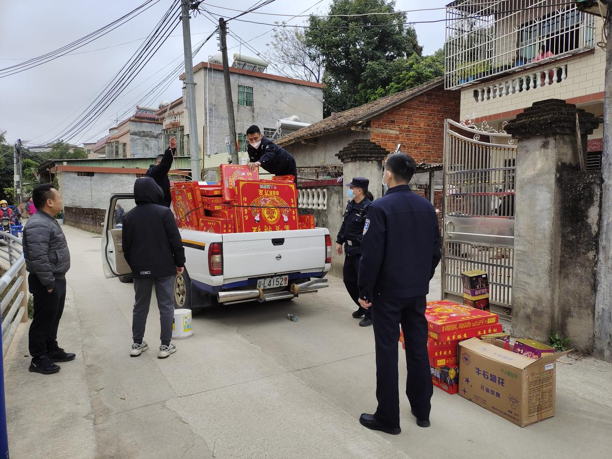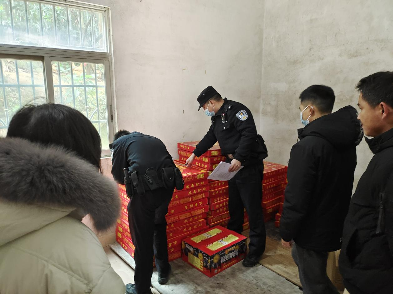 會后,相關職能部門迅速在轄區內聯合開展煙花爆竹安全檢查行動。在實地排查過程中,城郊派出所執法人員,在梅林村一戶村民家中發現并依法收繳查扣發現違規存放的爆竹70盒、煙花10盒。同時,現場對該村民進行批評教育,科普非法儲存、經營煙花爆竹的危害,希望提高村民自我保護意識,不再參與、自覺抵制非法儲存、經營煙花爆竹行為。