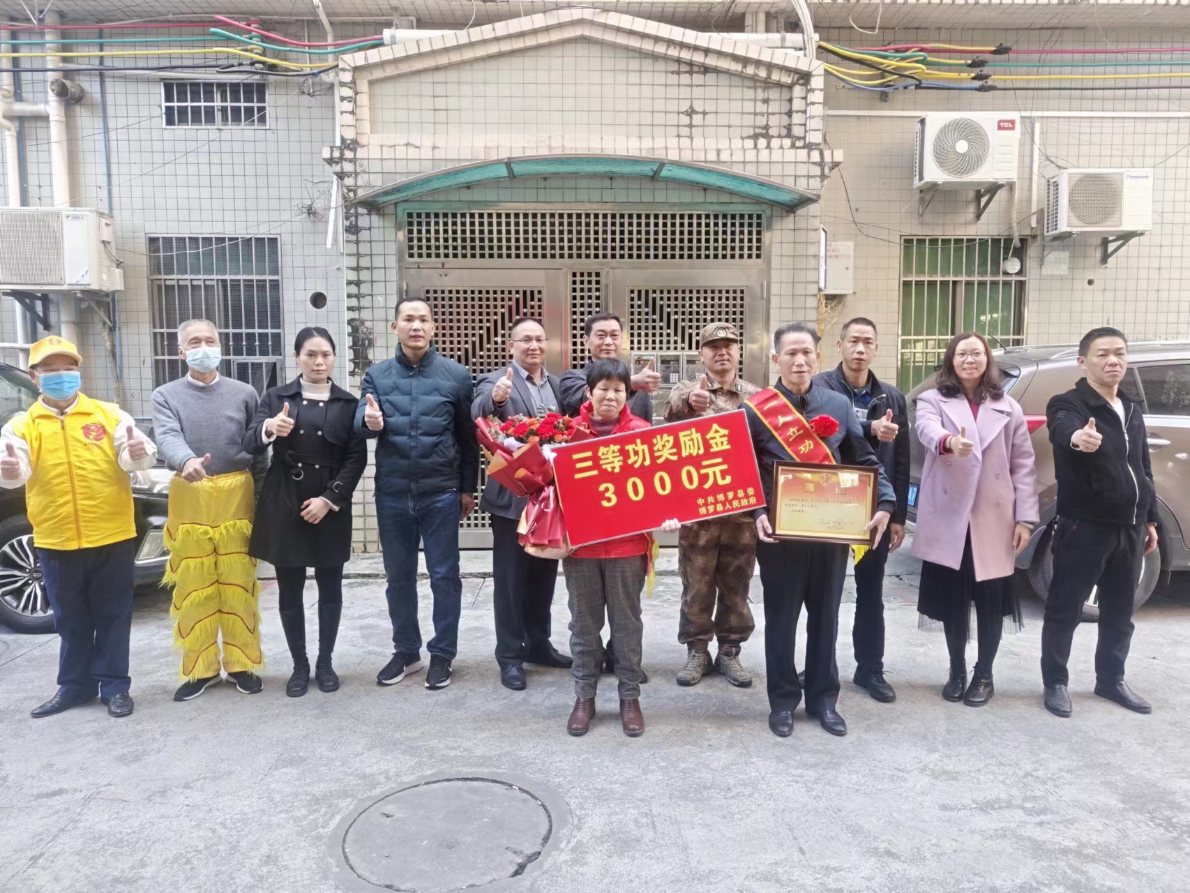 一份沉甸甸的喜報(bào),一場(chǎng)熱烈的授獎(jiǎng)儀式,滿載著軍人的榮譽(yù)和驕傲,為軍屬家庭帶去了新春的祝福和滿屋的喜氣,也體現(xiàn)了黨和國家對(duì)軍人的尊崇和對(duì)軍屬的關(guān)愛之情。縣人民武裝部干事張光華宣讀立功喜報(bào),縣退役軍人事務(wù)局服務(wù)中心主任張慶建和街道黨工委委員、武裝部長(zhǎng)朱國志向劉學(xué)聰家屬贈(zèng)送獎(jiǎng)勵(lì)金,并親自為家屬佩戴綬帶和大紅花。