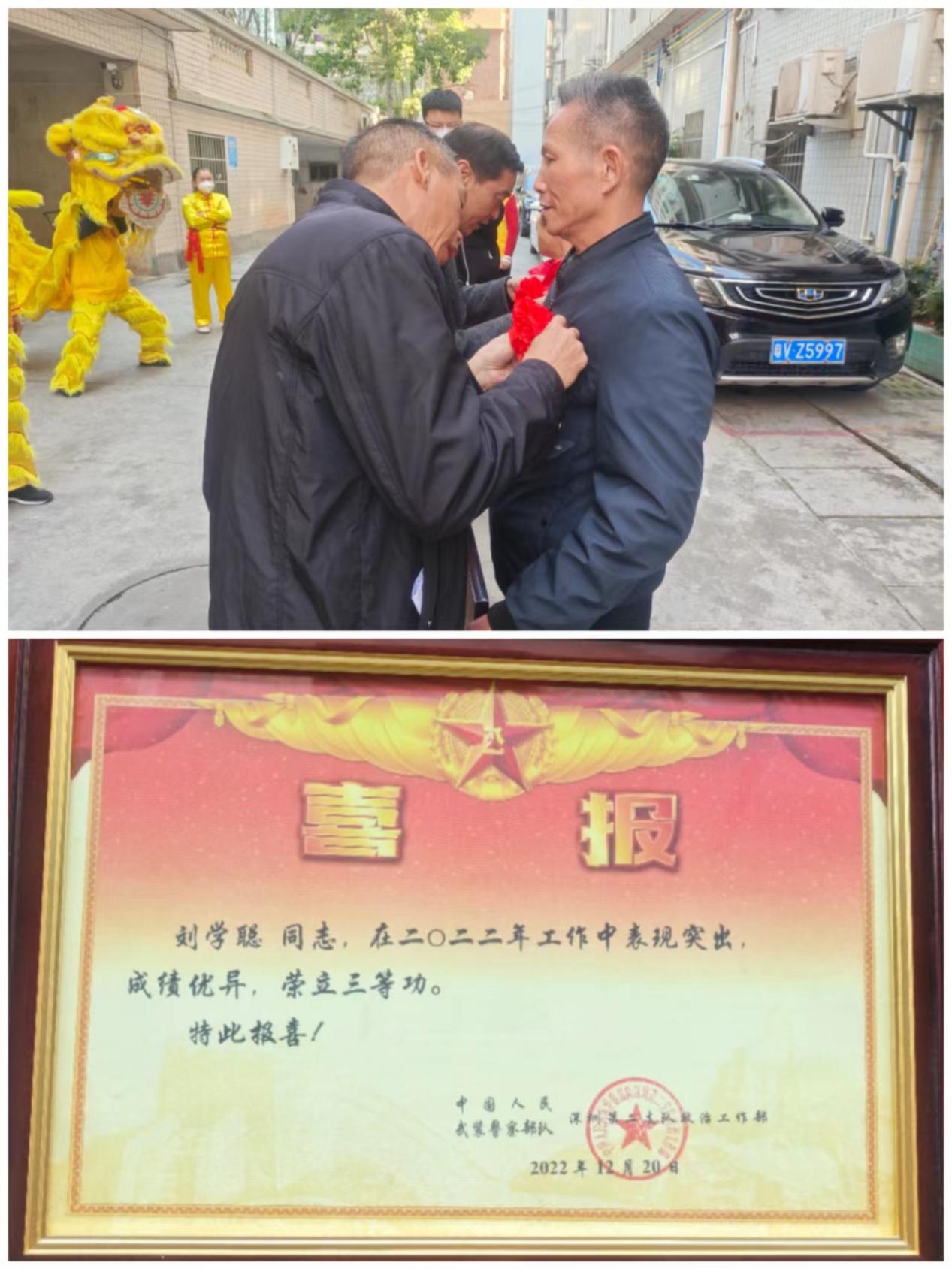 1月19日上午,新春來臨之際,由縣人民武裝部、縣退役軍人事務(wù)局,羅陽街道武裝部、退役軍人服務(wù)站及縣、街道戰(zhàn)旗志愿服務(wù)隊(duì)結(jié)成強(qiáng)大的報(bào)喜團(tuán)前往羅陽街道城東社區(qū),為榮立個(gè)人三等功的現(xiàn)役軍人劉學(xué)聰家庭送上立功喜報(bào)和新年祝福。