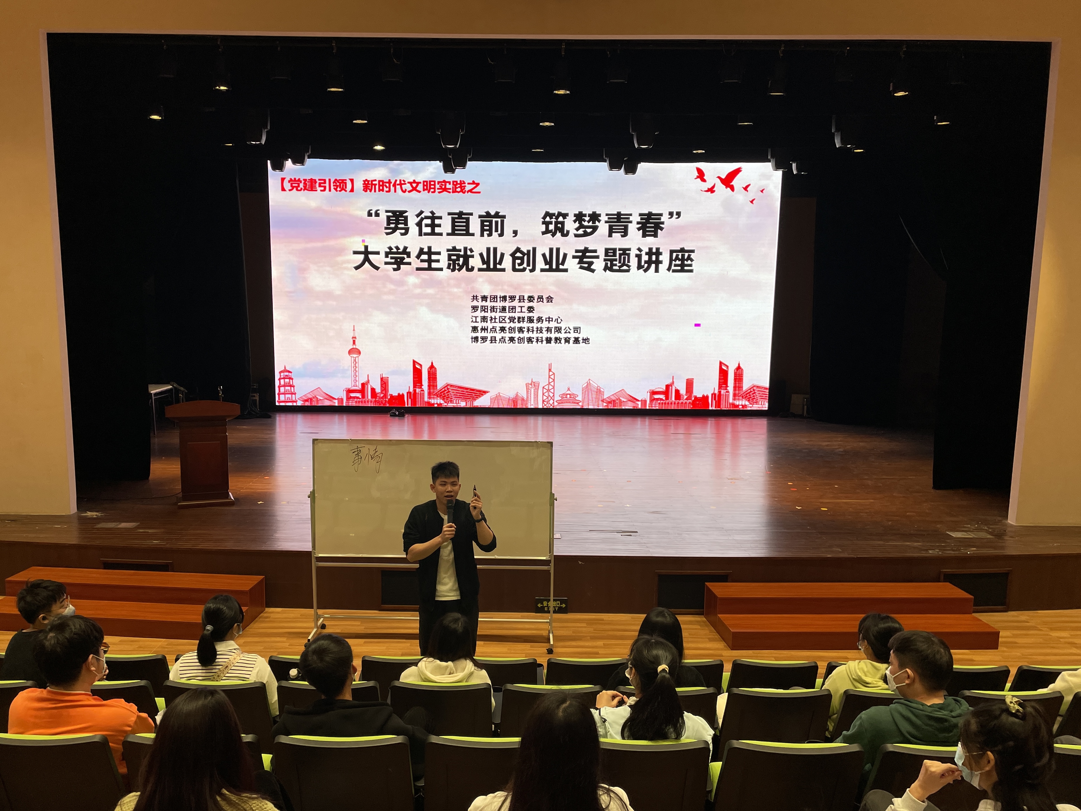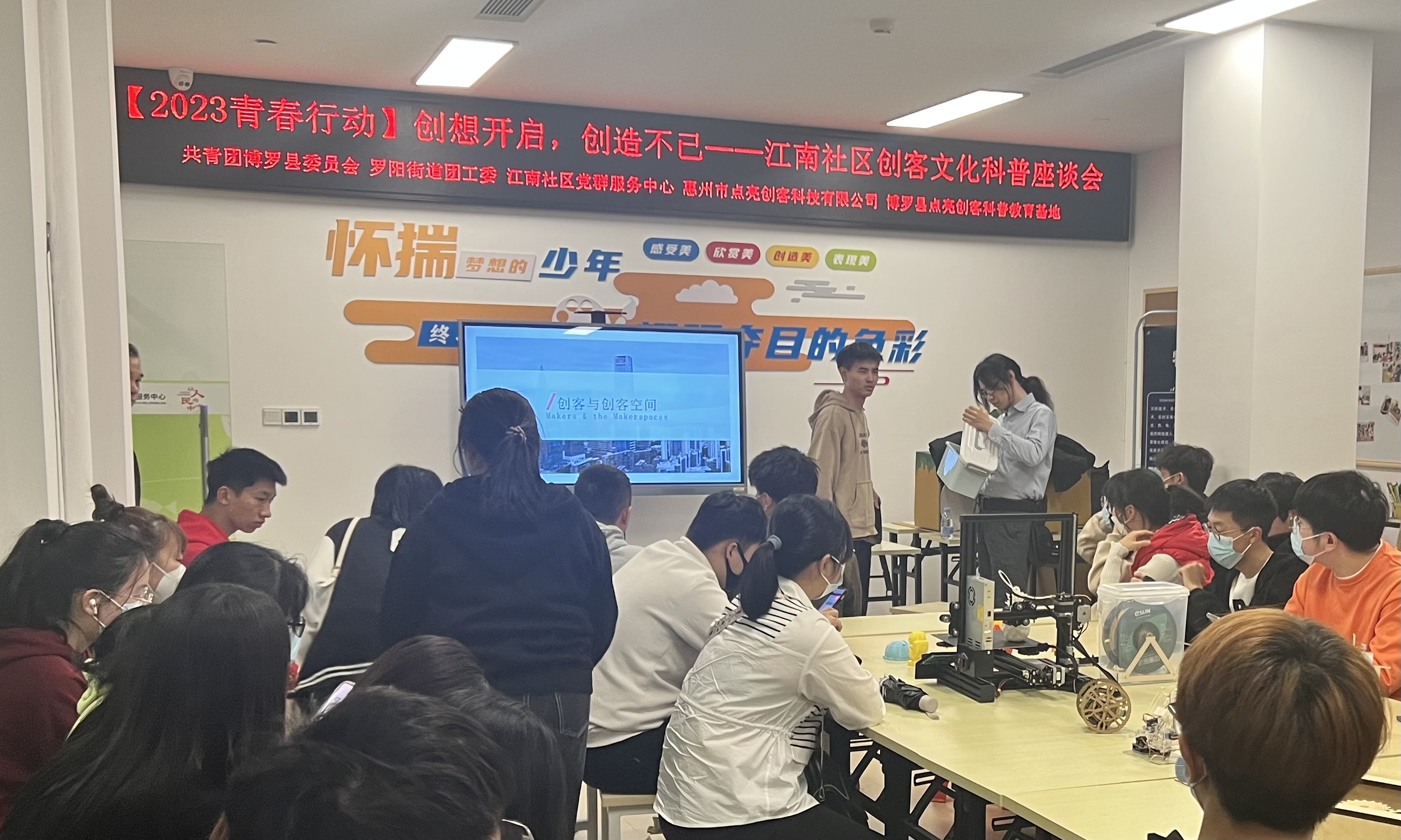 為進一步壯大青年人才隊伍,充分發揮共青團組織服務青年的重要作用,激發青年創新創業活力,推動創業青年成長發展,2月4日,共青團博羅縣委員會、羅陽街道團工委、江南社區黨群服務中心攜手惠州點亮創客科技有限公司開展“勇往直前,筑夢青春”大學生就業創業專題講座以及“創想開啟,創造不已”創客文化科普座談會。活動吸引了數十名青年大學生參加。