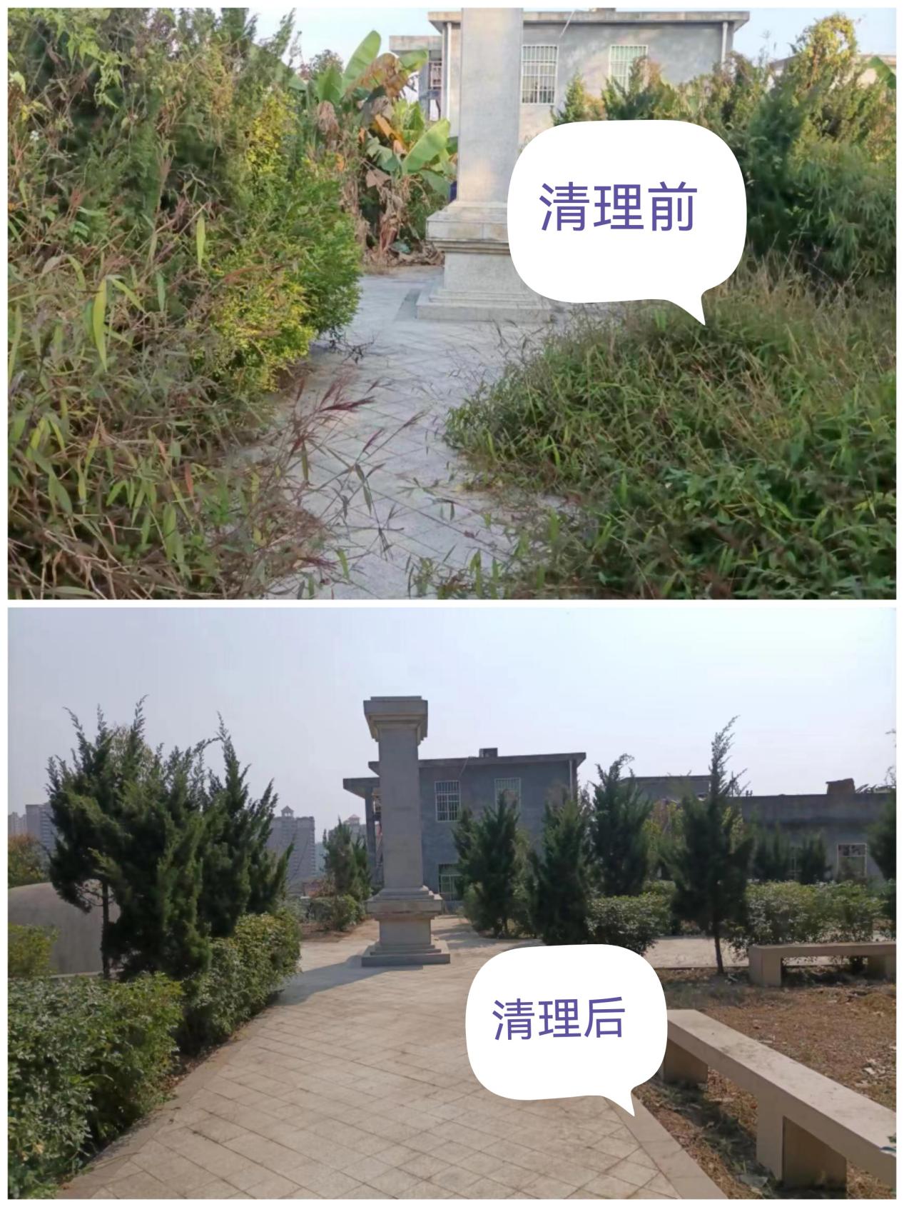 志愿者們備齊清潔工具在金吉芬烈士紀念碑集合,在清掃開始前,志愿者們進行了默哀活動,表達對逝去革命先烈的崇敬和哀思。隨后開始清掃活動,面對雜亂的環境,志愿者們充分發揚不怕臟、不怕累、甘于奉獻的雷鋒精神,紛紛拿起鐵鍬、大剪刀、電鋸等工具,清理墓碑周邊雜草,清掃墓地四周的垃圾,修剪柏樹枝葉,栽植松樹。通過為期兩天的整治,出動志愿者16人次,把紀念碑四周的環境衛生打掃得干凈整潔。蒼翠的松柏在春風的吹拂下給肅穆的墓園帶來了勃勃的生機,讓墓園舊貌換新顏。