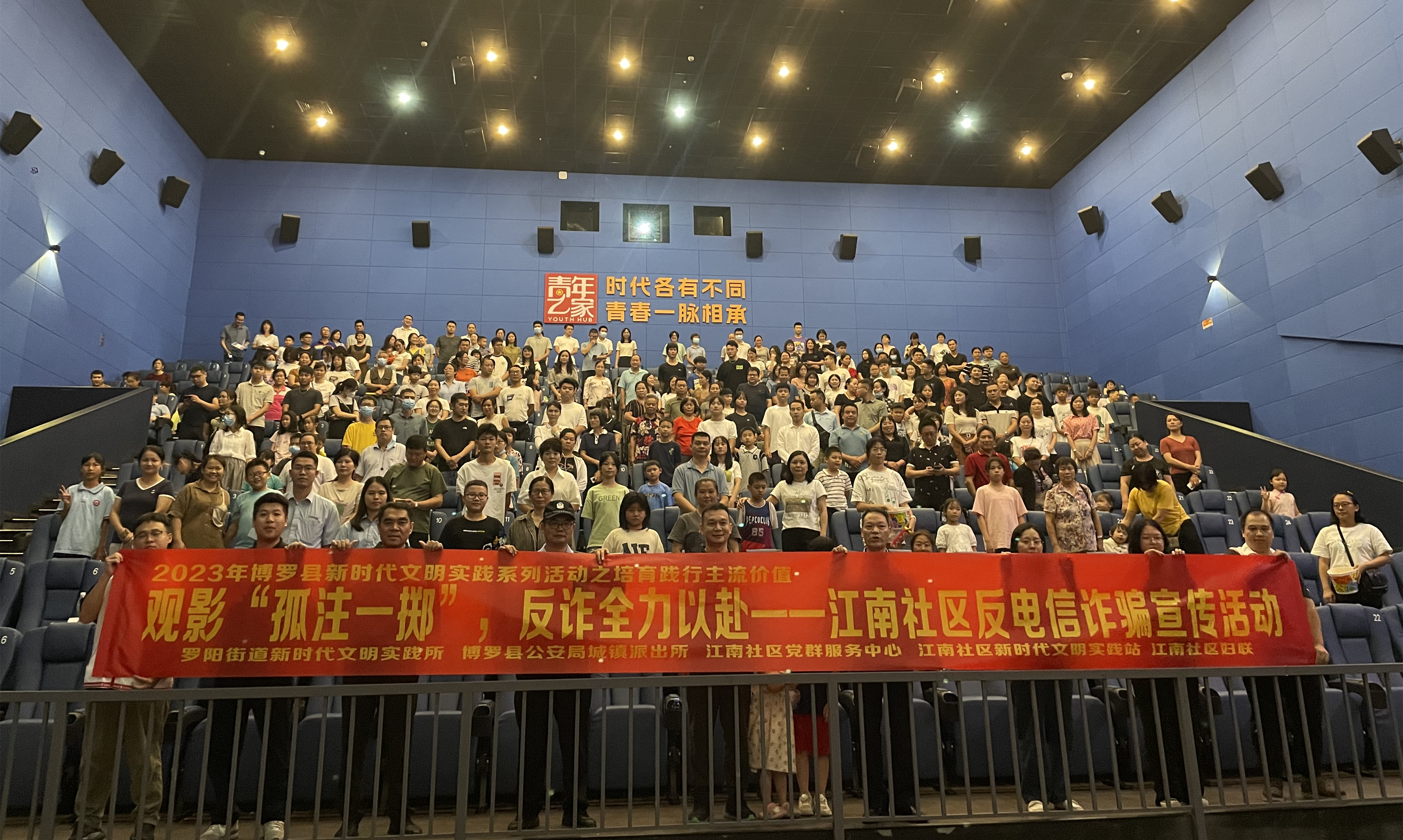 隨著電信網絡的快速發展,各式各樣的詐騙形式層出不窮,為進一步提升廣大群眾知詐、識詐、防詐、反詐意識,最大限度預防和減少財產損失,切實守好群眾“錢袋子”,持續筑牢全民反詐防線,8月30日,羅陽街道新時代文明實踐所聯合博羅縣公安局城鎮派出所、江南社區邀請了江南片區黨員干部、退役軍人、群眾居民等三百余人集中觀看近期熱門的反詐題材電影《孤注一擲》,吸引群眾廣泛參與學習反詐知識,掀起反詐熱潮。