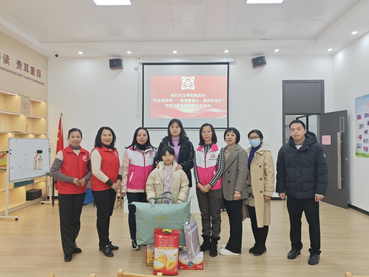 為深入貫徹習(xí)近平總書記關(guān)于婦女兒童和婦聯(lián)工作的重要論述精神,聚集婦女兒童“急難愁盼”問題,讓困難家庭度過一個歡樂祥和的新春佳節(jié),近日,在羅陽街道副主任、婦聯(lián)主席王彬蘭帶領(lǐng)下,羅陽街道婦聯(lián)、博羅縣教育義工團志愿服務(wù)隊在羅陽街道龍珠社區(qū)聯(lián)合開展“把愛帶回家——真情暖童心,相伴護成長”困境學(xué)生關(guān)愛慰問活動。