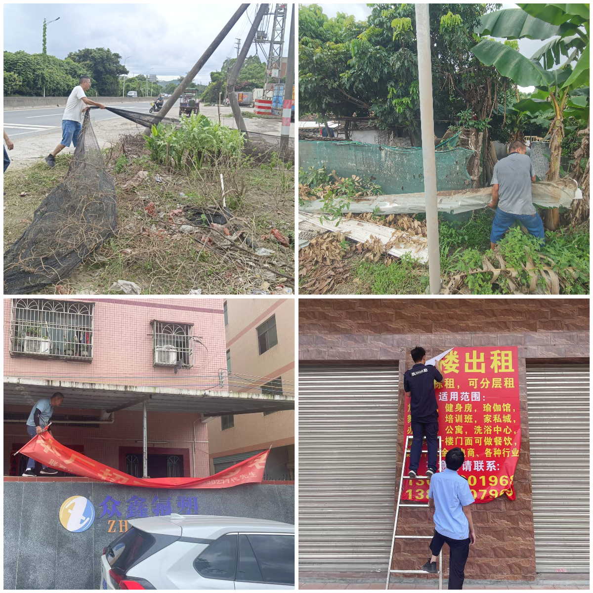 整治期間,街道領(lǐng)導(dǎo)班子下沉一線、靠前督導(dǎo),圍繞綜合整治要求,全面排查問題,抓實(shí)抓細(xì)重點(diǎn)工作。街道執(zhí)法隊(duì)、應(yīng)急管理辦、公共服務(wù)辦、小金村、東坑村等部門、村委干部對(duì)小金四角樓片區(qū)金龍大道、金羅路沿線的“六亂”進(jìn)行整治;對(duì)道路沿線兩側(cè)破損出入口進(jìn)行硬地化及裸露地進(jìn)行綠化工作,包括增綠、補(bǔ)綠和清雜等;對(duì)違法廣告招牌進(jìn)行清拆并動(dòng)員商鋪店主對(duì)門前臟亂差進(jìn)行集中整治。