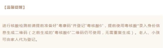 四、檢測時,請主動出示“粵康碼”和“粵核酸”等信息,48小時內接種過新冠疫苗的人請勿進行核酸檢測。注意全程佩戴口罩,與他人保持2米以上間隔,不交談,不聚集,聽從現場工作人員指引,有序完成掃碼、登記、采樣等工作流程。