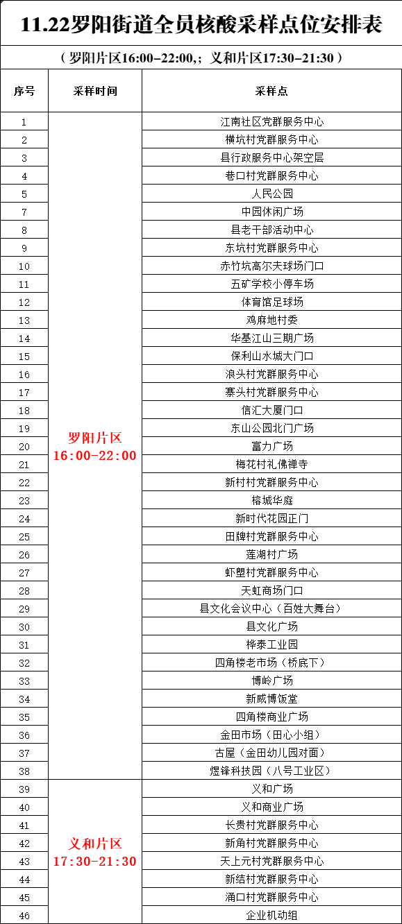 根據當前疫情防控形勢,為加強主動排查,有效阻斷疫情傳播風險,切實保障廣大群眾身體健康和生命安全,羅陽街道于2022年11月22日(星期二)開展區域性核酸檢測有最新的調整,具體檢測安排如下: