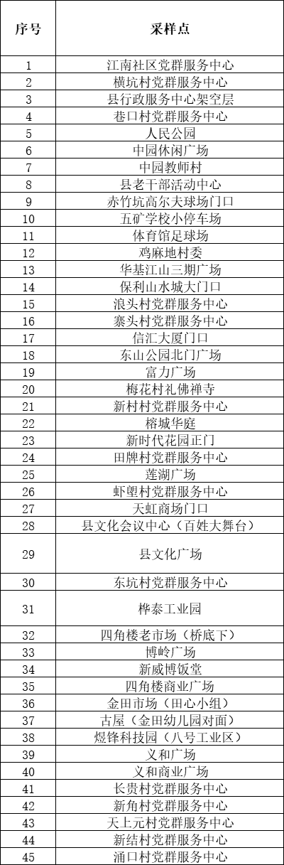 備注:義和廣場、義和商業廣場、長貴村黨群服務中心、新角村黨群服務中心、天上元黨群服務中心、新結村黨群服務中心、涌口村黨群服務中心核酸采樣時間為:11月25日下午17:30—21:30